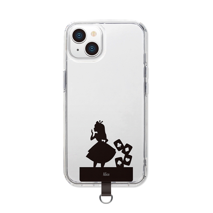 ストラップホールのないケースに挟むだけでストラップが付けられる、ディズニーキャラクターデザインのダイカット ストラップホルダーです。ナイロン素材をカットした品のあるシルエットデザインでクリアケースとの相性も抜群です。