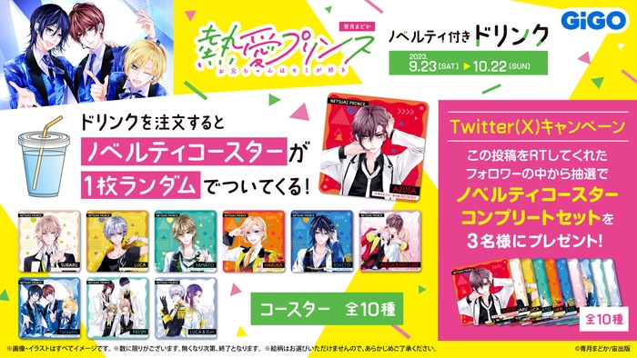 株式会社GENDA GiGO Entertainment(本社:東京都港区 代表取締役社長:二宮一浩 以下、当社)は、GiGOグループのお店におきまして2023年9月23日(土)より、青月まどか先生による漫画「熱愛プリンス お兄ちゃんはキミが好き」のノベルティ付きドリンクの販売を行います。