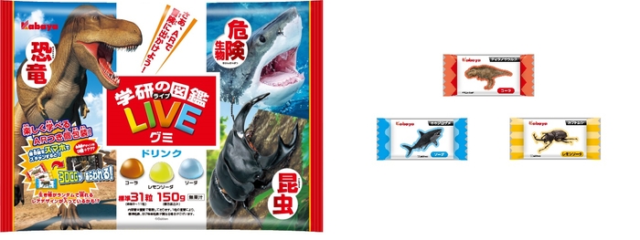 発売する商品は、男女問わず多くの子どもたちから愛され続けている大人気の図鑑「学研の図鑑 LIVE」の特長の1つであるAR(拡張現実)対応の絵柄をグミの個包装デザインにすることで、おやつの美味しさに加え、楽しく学べる要素を付加した商品です。