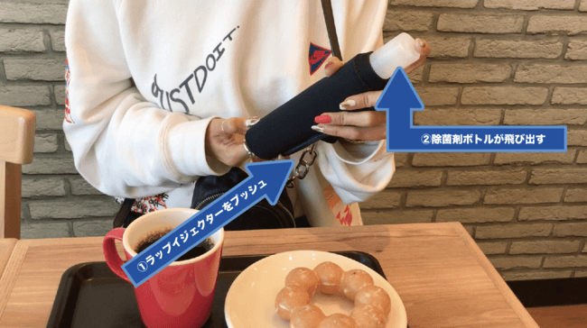 ■除菌剤ボトルの取り出しもワンアクション こんな時はやっぱりアルコール除菌