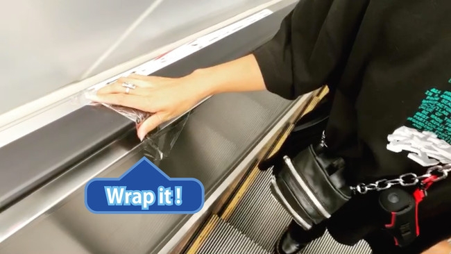 手すりやつり革、ドアノブ、買い物かご、エレーベーターのボタン、タッチパネル。直接ふれることに抵抗を感じたとき、「ここにラップフィルムがあれば……」という発想から生まれた製品です。