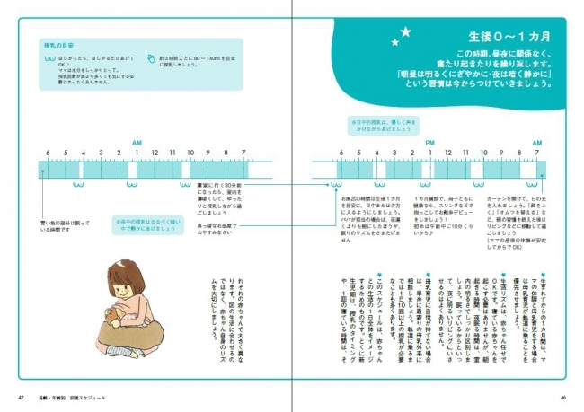 また、月例別・年齢別の詳細な「安眠スケジュール」も掲載。赤ちゃんの睡眠パターンは個性豊かなものですが、それぞれの家庭にベストな生活リズムを見つけるための大きな足掛かりとなるでしょう。