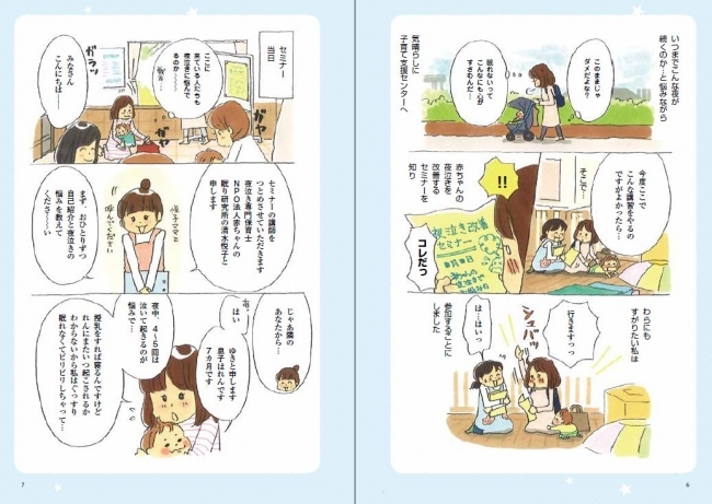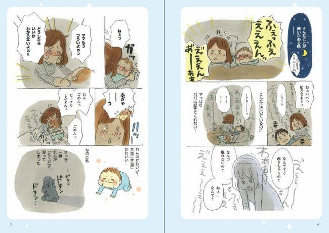 マンガを担当したのは、「こげぱん」のキャラクター原案などでおなじみのたかはしみきさん。自身も、長男の夜泣きに悩んでいる中、『赤ちゃんにもママにも優しい安眠ガイド』を活用したといい、その時の経験もマンガ化に生かされています。
