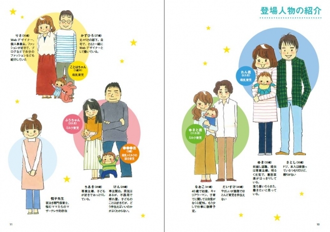 本書は、4組の新米ママ&パパが登場し、それぞれの子どもの睡眠に関する悩みを悦子先生に相談するというストーリー仕立てで、誰でも気軽に読むことができます。