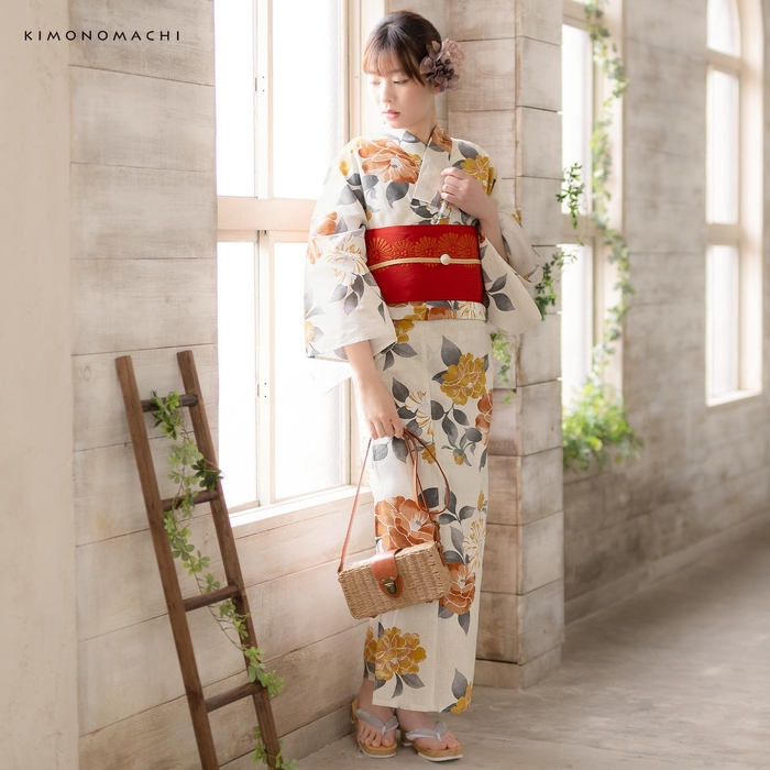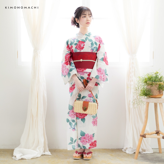 浴衣のみの販売です。帯や下駄、小物類は、それぞれ単品でお好みのものを購入いただいたり、お手持ちのアイテムを合わせて着用可能。