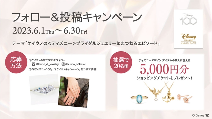 【ケイウノ】「Disney100」を祝して “<ディズニー>ブライダルジュエリーのエピソード”を募集する Instagram・Twitter投稿キャンペーンを開催
