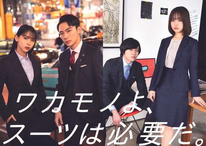 今回は、それぞれのSNSアカウントでの投稿に加え、ザ・スーツカンパニーの公式SNSや特設サイトにてカタログ画像をはじめ、撮影中のオフショットも織り交ぜたコンセプト動画なども掲載していきます。また、店頭ではスーツをスタイリッシュに着こなした4名のビジュアルを使用したPOPやカタログ配布などを通して、ファーストスーツの着用イメージの訴求を行っていきます。
