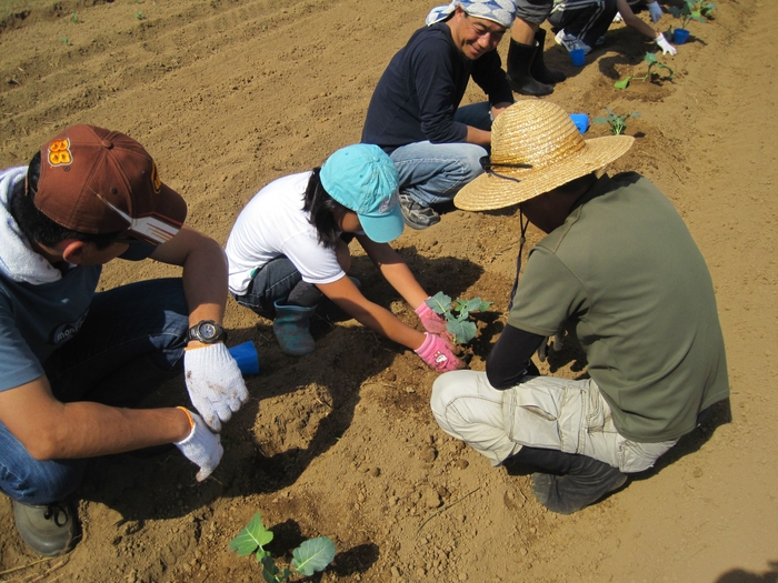 参加者の中でも、特に子供達は経験のない種の植え付けや水撒きなど畑作業に興味をもち、楽しそうに作業を手伝っていました。