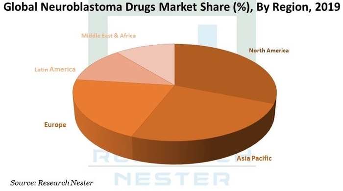 北米の神経芽細胞腫薬の市場は、技術的に強化された薬の増加と神経芽細胞腫の発生率の増加により、この地域を支配すると予想されます。さらに、ヘルスケアセクターへの投資の増加と神経芽細胞腫の治療のための希少疾病用医薬品の承認が市場の成長を後押ししています。アジア太平洋地域は、小児癌ベースの急増につながる新興国の存在により、最も急速に成長する市場であると予想されています。ヨーロッパの市場は、がん治療のための小児医療センターの数の増加と健康に関する意識の高まりにより、大幅な成長を遂げると推定されています。
