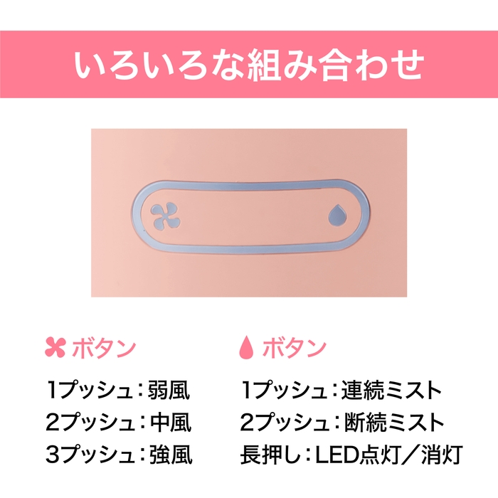 「パーソナルミストファン」夏は扇風機としてミスト状の風が涼しく、冬は乾燥対策の加湿器として使用できる年中使える商品となっております。