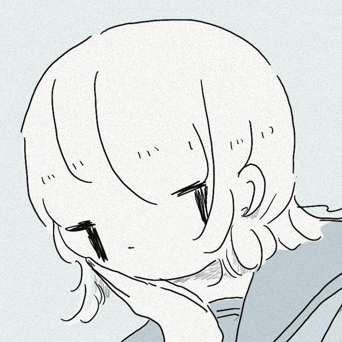 淡い青色の世界の中に、寂しげな女の子を描いています。