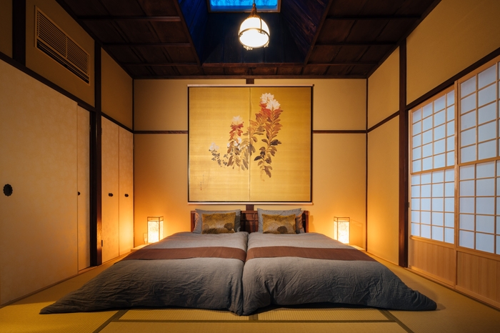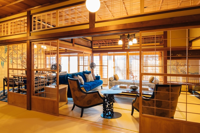 当施設は、築100年という伝統を残しながら快適に過ごせるようにリノベーションが施され、各所に散りばめられた伝統技術が生きる建築意匠や、洗練されたデザインの調度品、アートが特徴的です。 リビング・ダイニングスペースにはインテリアデザイナーこだわりの家具が配置され現代的でありながら和の雰囲気を演出しています。自分の別荘のようにくつろぎながら、美術館のような上質な文化を体験できる宿泊施設となります。