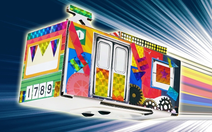 フリクションモーターを使って、走る電車づくり。勢いをつけてビューンと走らせよう。