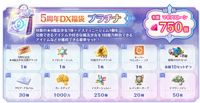 ※選択した魔法少女をすでに所持している場合、その魔法少女の「デスティニージェム」を2つ獲得できます。