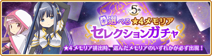 『5周年記念 選べる★4メモリアセレクションガチャ』