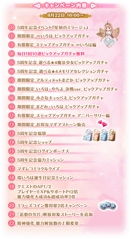 『マギアレコード 魔法少女まどか☆マギカ外伝』、8月22日16:00より、『5周年記念キャンペーン』を開催!魔法少女「∞いろは(インフィニットいろは)」が登場!他