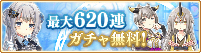 期間中、対象のガチャでそれぞれ毎日1回限定で「10連ピックアップガチャ」が無料で引け、最大620回分ピックアップガチャが無料となります。