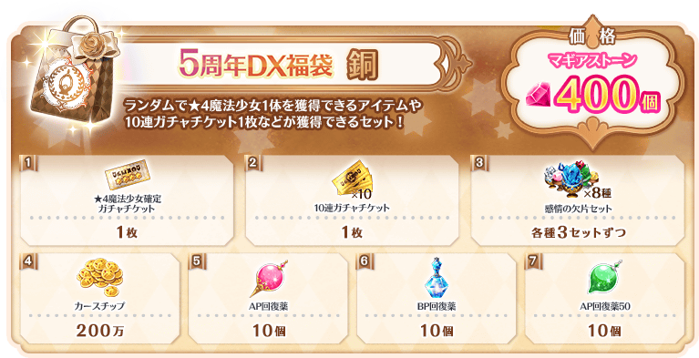 ⑤5周年記念 選べる★4魔法少女ピックアップガチャ