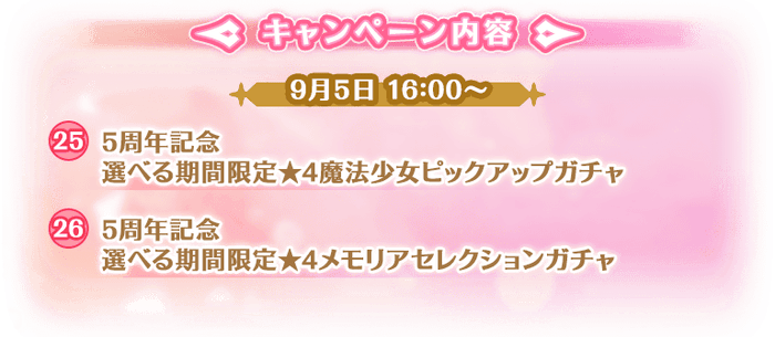 『5周年記念 選べる★4魔法少女ピックアップガチャ』