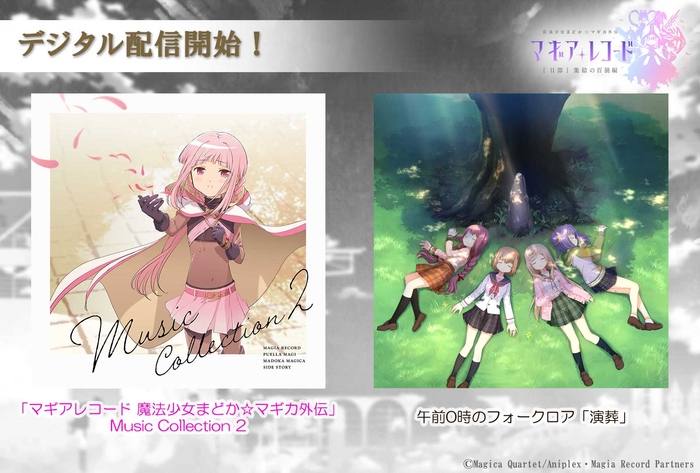 8月22日00:00より、メインストーリー第2部のゲーム内楽曲のほかイメージソングやテーマソングなどを収録した音楽アルバム「マギアレコード魔法少女まどか☆マギカ外伝」Music Collection 2と午前0時のフォークロア「演葬」のデジタル配信を開始いたしました。