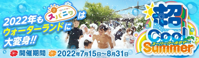 「スパニワ」で実施する楽しいイベントや期間限定フードメニューなど、ご家族やお仲間と一日たっぷり楽しめる夏らしさいっぱいのイベント【超Cool Summer ~スーパークールサマー~】に足をお運びください。