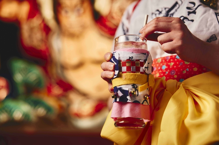 ねぶた丸ごと焼きりんごに合わせて、盛り上げ役の跳人をイメージした「跳人りんご酢ソーダ」を提供します。ねぶた柄の浴衣に、腰に巻く鮮やかな黄色の帯や赤いタスキなど、祭りに参加する際に跳人が着用する衣装を表現した見た目が特徴です。跳人のステップのように軽やかに弾ける炭酸と、甘さと酸味のバランスが程よい華やかな味わいを楽しみながら、祭り気分をさらに盛り上げます。