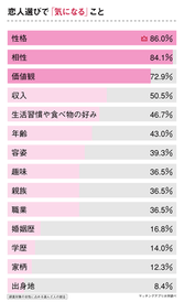 「もっとも重視すること」だけではなく、恋人を選ぶ上で「気になること」についても聞きました。
