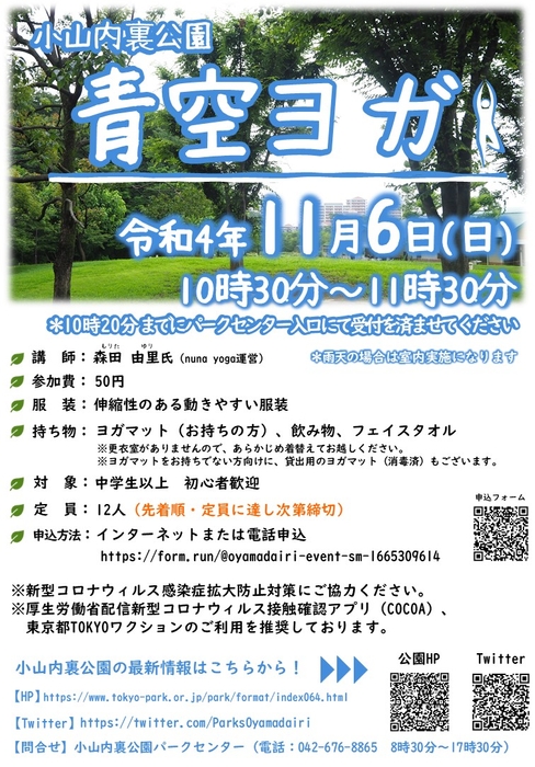 ※中止の場合はTwitter(@ParksOyamadairi)でお知らせします。また、インターネット経由の申込者についてはシステム上からのメールでお知らせします。