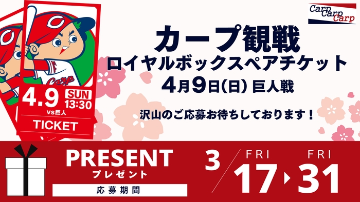 「4月9日(日)巨人戦 ロイヤルボックスペアチケット