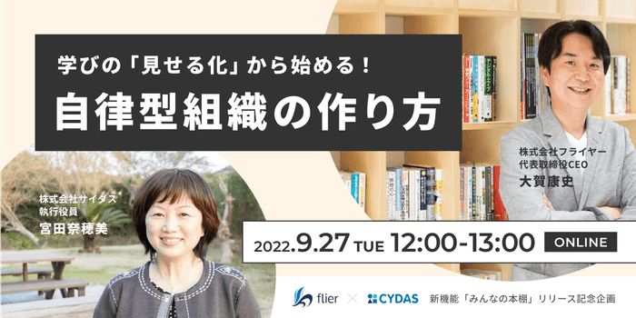 2022年9月27日(火)、株式会社サイダスと株式会社フライヤーは、ウェブセミナー「学びの『見せる化』から始める!自律型組織の作り方」を共同で開催します。
