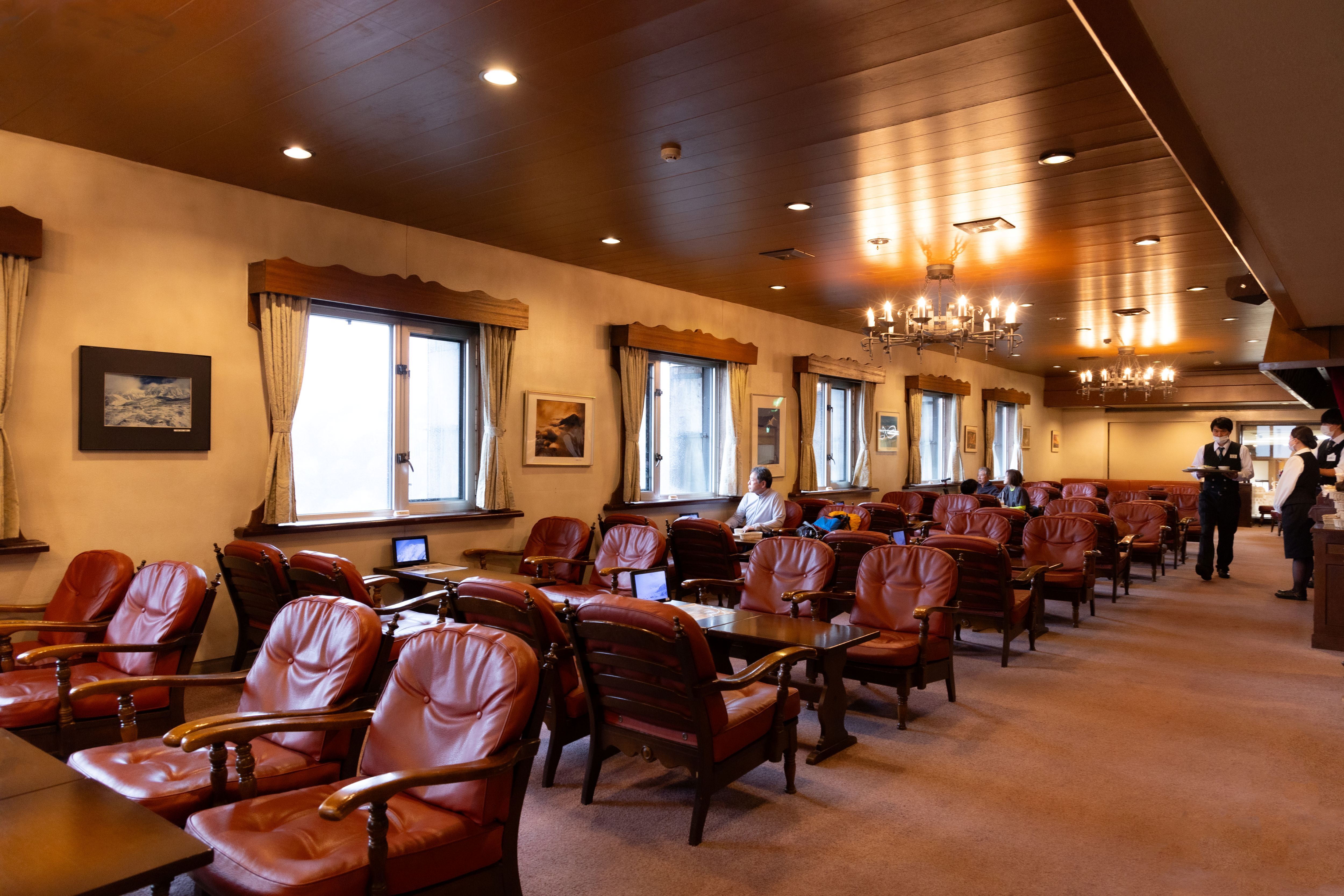 ゆったりとした空間で、雪景色を眺めながら温かいコーヒーを楽しむことができます。