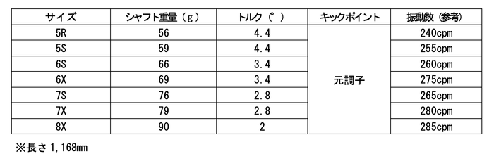 本製品は、手元側をしなりやすくし粘り感を追求するとともに、しなり戻りの再現性に優れており、安定した方向性を求める中上級者向けのカーボンシャフトです。