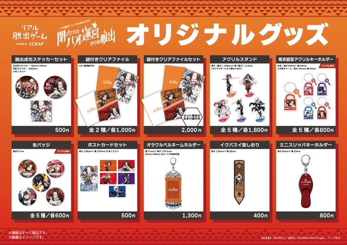 さらに、この度オリジナルグッズも同時販売決定! キャラクターイラストはすべて描き下ろしで、ここでしか手に入らない限定グッズとなっています。全10種の豊富なラインナップから、ぜひお気に入りを見つけてください。SCRAP GOODS SHOP(ECサイト)では、7,000円以上の購入で送料が無料になりますので、謎解きキットと一緒に購入するのがおすすめです。