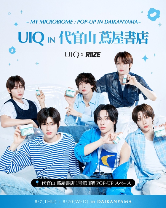 マイクロバイオームと新薬開発の専門企業Genome & Companyの独自技術から誕生したスキンケアブランド「UIQ(ユイク)」が、2024年夏の銀座、2025年春の新宿で大好評をいただいた「RIIZE × UIQポップアップストア」を、多くのリクエストにお応えして、このたび、緑豊かで落ち着いた雰囲気の代官山 蔦屋書店に初登場します!
