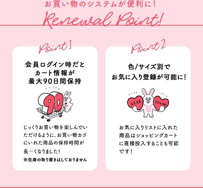 じっくりとお買い物を楽しんでいただけるように、お買い物カゴに入れた商品の保持期間が長くなりました。