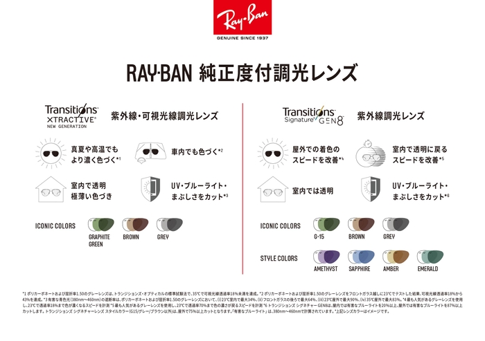 調光レンズ “トランジションズ®” レイバン純正度付オーダーを11月19日(土)から開始