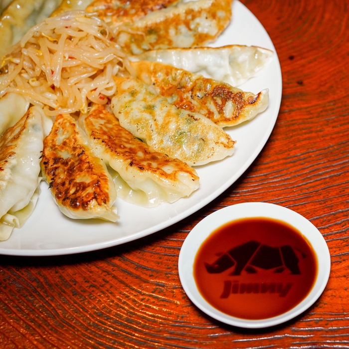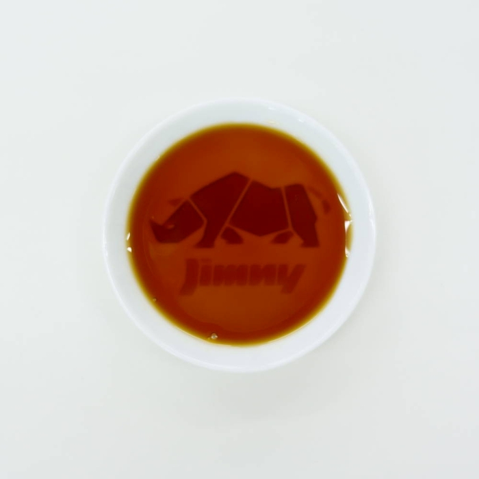 不整地を駆け抜ける力強い「サイ」のロゴが醤油の濃淡によって食卓に現れ、