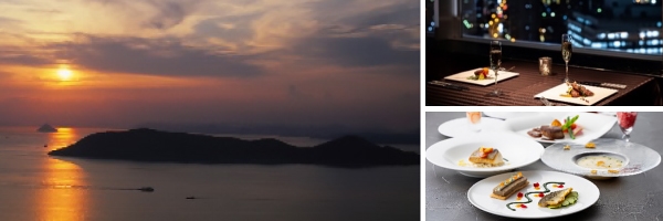 このプランでは、その景色を眺めることができる窓際のお席を確約、さらにデザートフランベサービスなどをつけて提供します。旬の食材を使用し美しく仕上げたこだわりの料理を、景色とともにご堪能いただけます。