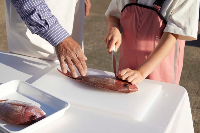 今回は市場から港へ戻り、獲った魚の捌き方を漁師から教わります。包丁の持ち方や捌く魚の部位、体のつくりを学びながら魚を捌くことができます。精一杯網を引っ張って獲れた魚を捌き、炊き上げた土鍋ご飯の味は格別です。さらに、魚を丸ごと一匹土鍋ご飯やあら汁にして余すことなく味わう経験は、食へのありがたみを感じるきっかけにもなります。