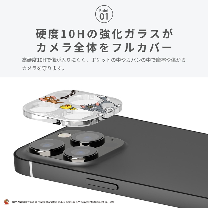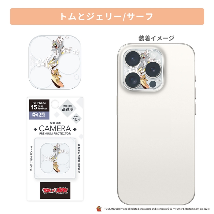 「トムとジェリー」デザインのiPhone 15 Pro/15 Pro Max用カメラフルプロテクターです。