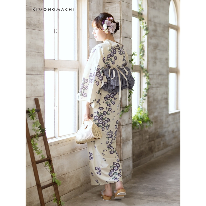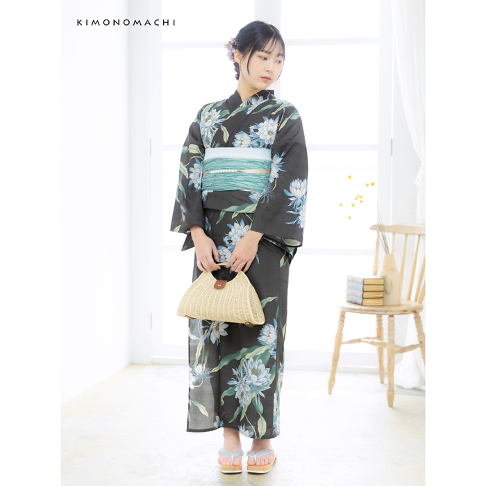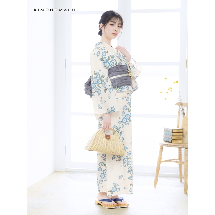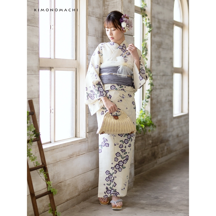 浴衣のみの販売です。帯や下駄、小物類は、それぞれ単品でお好みのものを購入いただいたり、お手持ちのアイテムを合わせて着用可能。