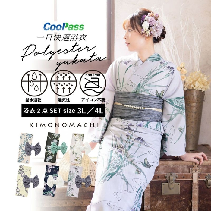 京都発の和装ブランドKIMONOMACHI(有限会社京都きもの町、京都府京都市、代表取締役:久保村一文)は、和装通販ショップ「京都きもの町」にて2024年新作として、吸水速乾高機能ポリエステル浴衣全6種類を発表しました。同社はメディア衣装提携実績が豊富なブランド。2024年新作はネモフィラ、カキツバタ、月下美人の3柄各2配色で、S、F、LL、TL、3L、4Lとサイズ展開も豊富です。浴衣単品、浴衣+帯の2点セットで販売。オンラインストアより購入可能。2024年4月4日正午(12時)から予約販売開始です。