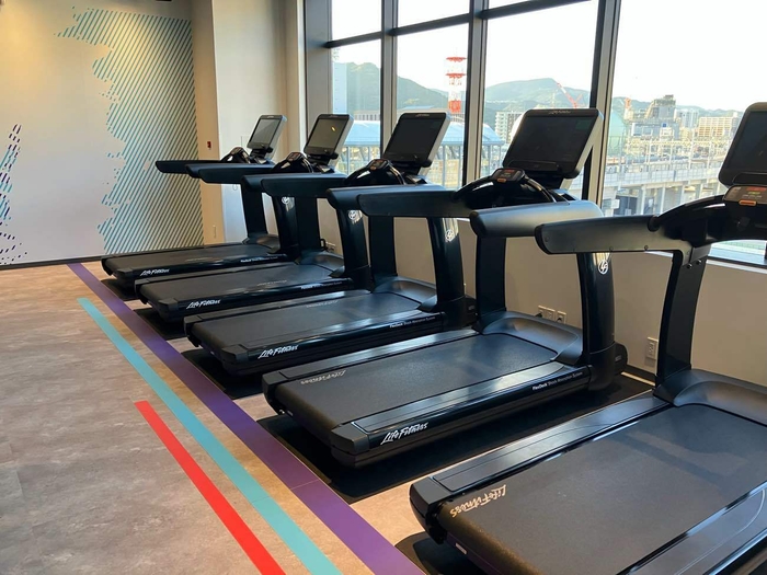 ・施設内5階にある店舗外装を一面ガラス張りにしたことにより、新幹線や街の景色を眺めながら、明るく開放的なワークアウト環境