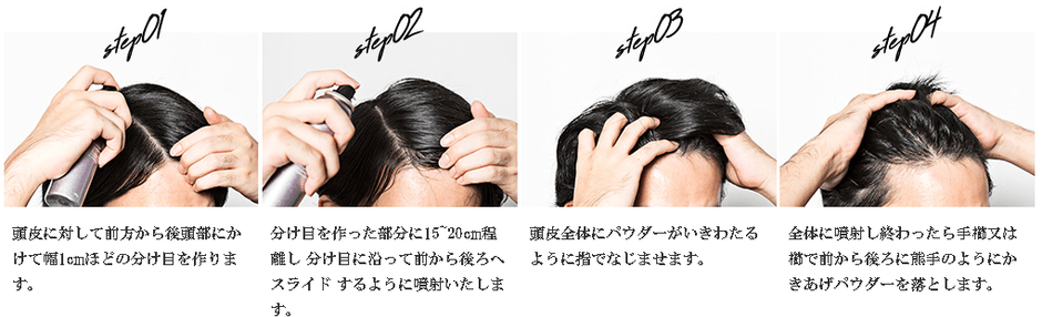 ※パウダーが髪に白く残ることがあるので、しっかりとこすってなじませてください。