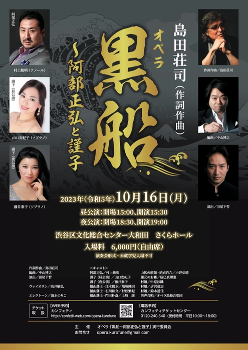 島田荘司 作詞作曲 オペラ黒船 東京公演(演奏会形式)大好評の作品に新曲を交え上演決定 プロジェクションマッピングも!カンフェティでチケット発売 | NEWSCAST