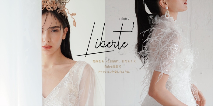 フランス語で“自由”を意味するその名のとおり、決まりきった型にはまることを好まず、もっと自由に輝きたいと願う花嫁さまの憧れを叶えるべく、最新のトレンドをふんだんにとりいれています。