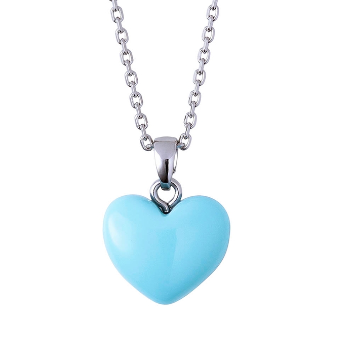 フェナが身につけている鮮やかなライトブルーのハートのネックレスを再現しました。