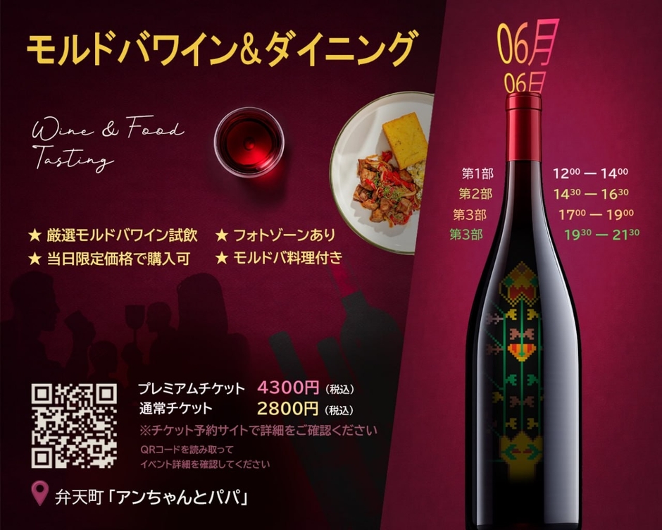 2026年6月6日(土)に大阪・弁天町「アンちゃんのカフェ」にて、「モルドバワイン&ダイニング」を開催いたします。