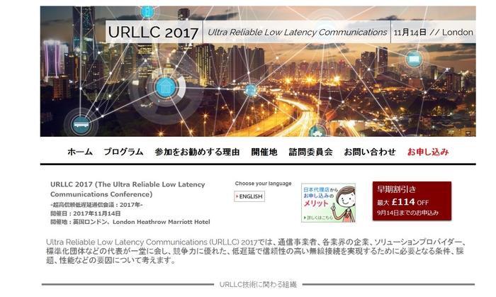 国際会議 「超高信頼低遅延通信会議:2017年」(Executive Industry Events Limited主催)の参加お申込み受付開始
