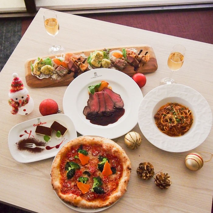 JR西明石駅に近いホテルキャッスルプラザ内のイタリアンレストラン「カンポフェリーチェ」では、心温まるXmasディナーセットとおうちで楽しめる特別なテイクアウトメニューをご用意。クリスマスの魅力が満ちあふれるひとときをお届けいたします。